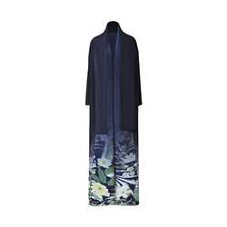 تصاميم مخصصة مقبولة، كارديجان نسائي محتشم من قماش البوليستر المرن رباعي الاتجاهات، بطول الكاحل، مطوي بنقشة زهور، فضفاض، على الطراز الدبي