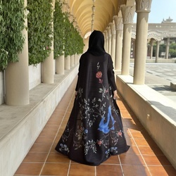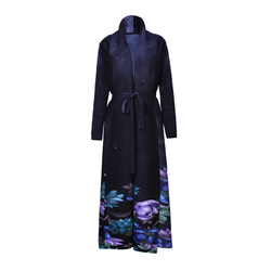 Zarif kadın Polyester Abaya ceket anti-kırışıklık kat uzunluk uzun kollu çiçek desen pileli Hem gevşek Fit mütevazı giymek